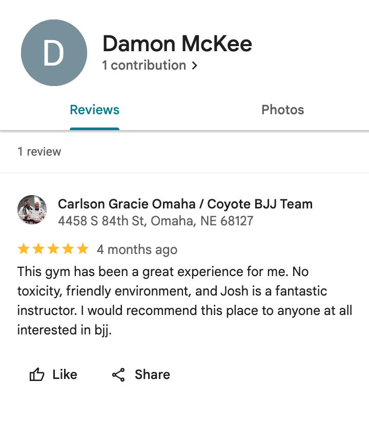 Josh Santarpia is a Brazilian Jiu-Jitsu black belt with 14 years of experience and the founder of Coyote BJJ Omaha.Known for his calm, no-ego approach, Josh teaches real-world self-defense in a structured, beginner-friendly environment. Trained under the Carlson Gracie lineage, he brings technical skill and steady leadership to every class.His mission is simple: help people build confidence, stay safe, and grow through honest, practical training.